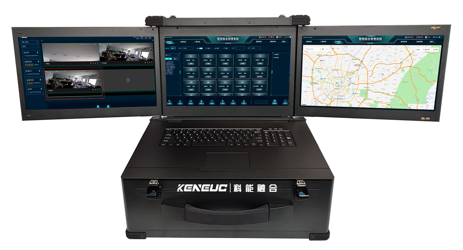 科能典型的三屏便携式应急指挥箱,集成了显示、控制和通信功能